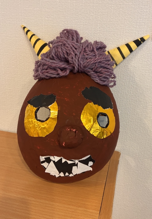 最近、高いところに登りたがるので目が離せない妹ですが、棚の上にそのお面を置いてみたところ、ピタッと近づかなくなりました。 今では我が家の安全を見守ってくれる、「やさしい鬼さん」として活躍してくれています。